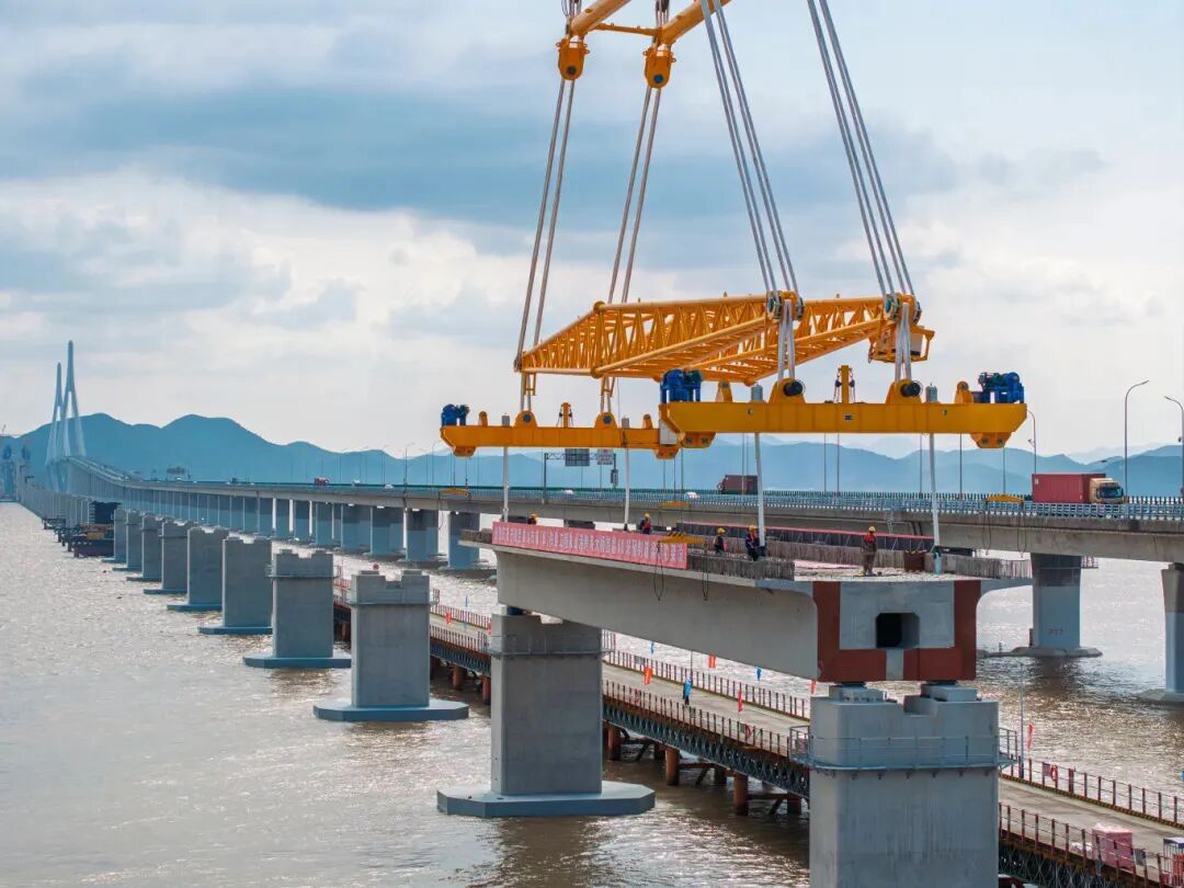 刷新紀錄!巨力索具助力象山港跨海大橋主橋邊跨結合梁架設